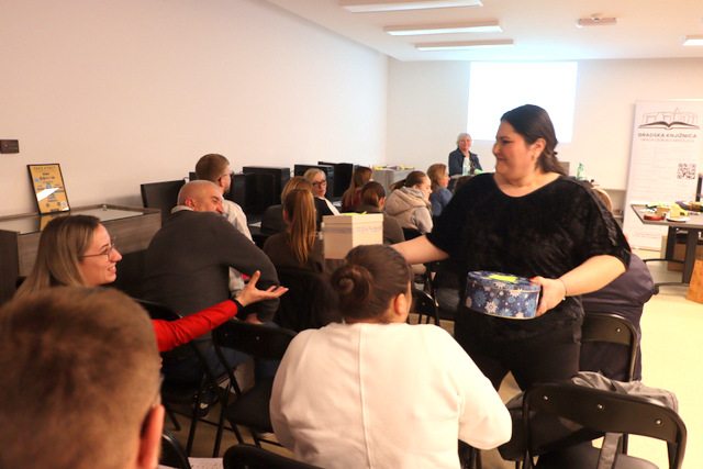U Gradskoj knjižnici grada Donjeg Miholjca (u utorak , 11, travnja) pod nazivom “Čitav svijet pod prstima” održana je promocija taktilnih slikovnica i interaktivna radionica. Na osobito zanimljiv način autorice Marta Senković (Viljevo) i Ankica Valentić -Butković (Osijek) upoznale su posjetitelje s Brailleovim pismom, te su predstavile četiri taktilne slikovnice. (“Prijateljstvo nas veže”, “Ankin sjaj”, “Drvo” i “Borna – robot koji osjeća”)