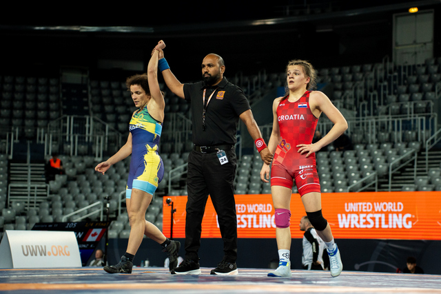 Prvu borbu dana odradila je Ena Zemunić protiv Brazilke Kamelie Barbose Vito Da Silve (37). Ena je pružila izuzetno zrelu i taktički vrlo kvalitetnu borbu protiv čak 20 godina starije suparnice. U obje runde uspješno je kontrolirala tijek meča, nametnula ritam te pokazala visoku razinu mentalne stabilnosti i fizičke spremnosti. Ipak, u samoj završnici druge runde presudila su tri boda prednosti na strani iskusne Brazilke.