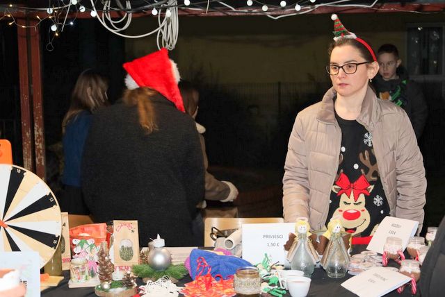 te učenici škole. Posjetitelji su na štandovima mogli pronaći raznovrsne rukotvorine i domaće proizvode, među kojima su se isticali privjesci, anđeli, božićni ukrasi, čestitke, platneni ukrasi za bor, sapuni, proizvodi od gaveza, štalice i snjegovići. Uz bogatu ponudu rukotvorina, posjetiteljima je bila dostupna i raznovrsna gastronomska ponuda u kojoj su se nudili kakao, dječji punč, palačinke, pop cakes, topli sendviči, vafli, kokice, med, kava, čaj, bubble tea i topla čokolada.