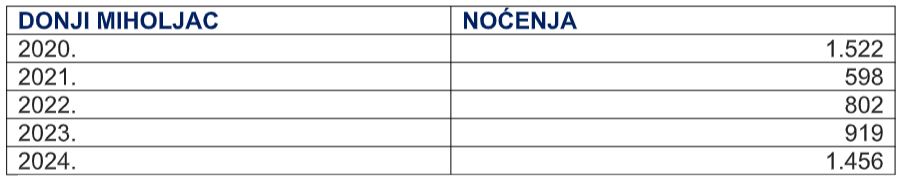 Tabela 1. Prikaz noćenja na području grada Donjeg Miholjca 2020. – 2024.g.