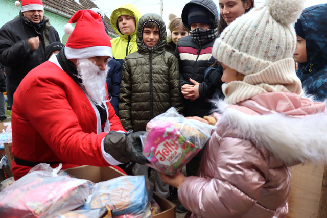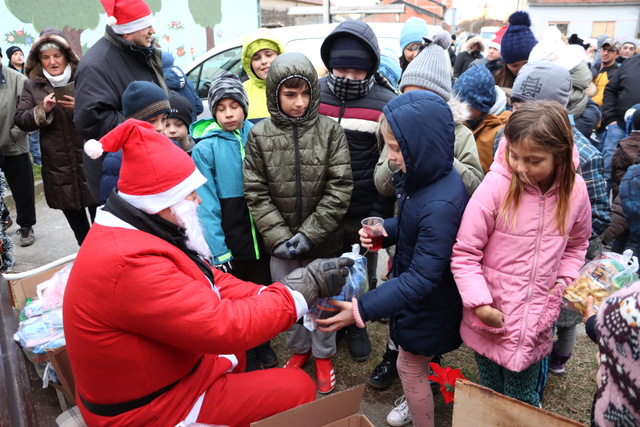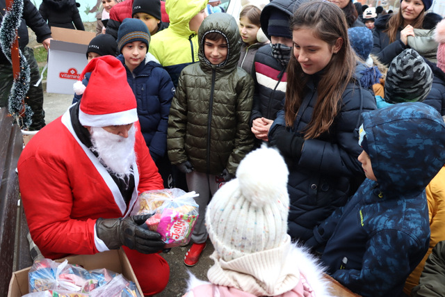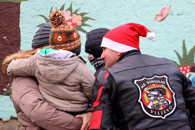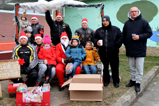 Djeca su bila oduševljena kad su ugledala Motomrazove koji nisu došli praznih ruku, nego su ih darivali lijepim darovima.