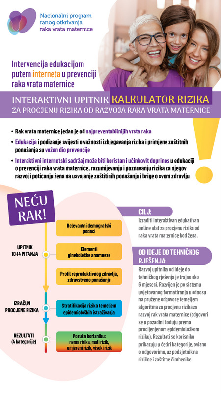 Interaktivni upitnik (kalkulatora rizika) razvijen je s ciljem da uz pomoć interaktivnog i edukativnog online alata pruži mogućnost grube procjene rizika od raka vrata maternice kod žena te podsjeti na zaštitne metode koje imamo na raspolaganju.